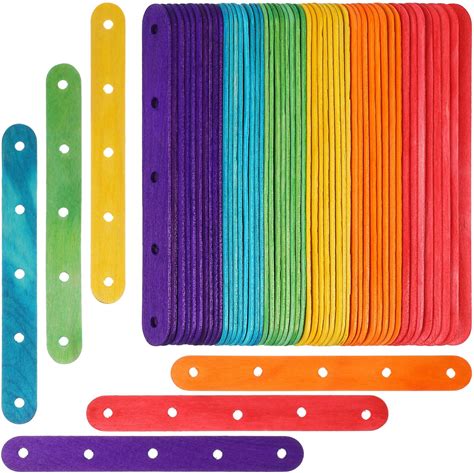 MAGICLULU 100 PCS Colored Craft Sticks - Wooden Popsicle Sticks With Holes For DIY Building Projects, Rainbow Wood Ice Cream Strips For Classroom Art