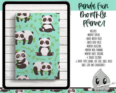 Panda Fun Monthly Portrait Planner For Goodnotes | iPad Planner | Goodnotes Planner | Landscape Planner | Notebook Planner |