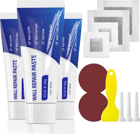 SEISSO Drywall Repair Kit, Wall Mending Agent3(100G), Wall Patch4, Scraper And Sandpaper2, Wall Repair Paste Kit For Wall Cracks, Graffiti,