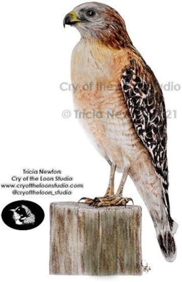 Red Shouldered Hawk Original Colored Pencil Drawing Print