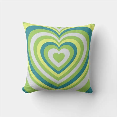 Whimsical Green Hypnotic Heart Retro Valentine Throw Pillow