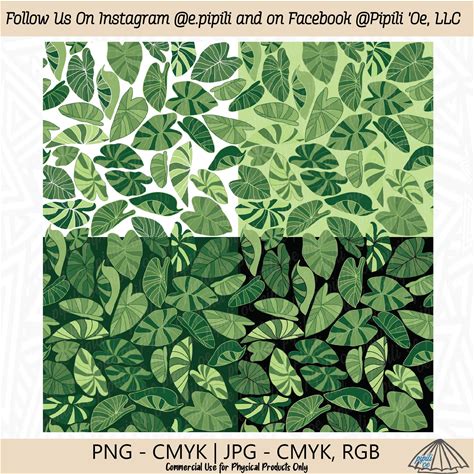 Colorful Kalo Leaves Repeating Pattern - Kalo Leaf Seamless Pattern - Kalo Leaves Pattern PNG - Digital Download - Taro Leaf Repeating JPG