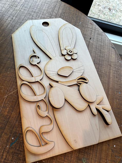 Hello Spring Bunny Sign Door Hanger Easter Spring Glowforge SVG Porch Seasonal Sign Instant Download Digital File