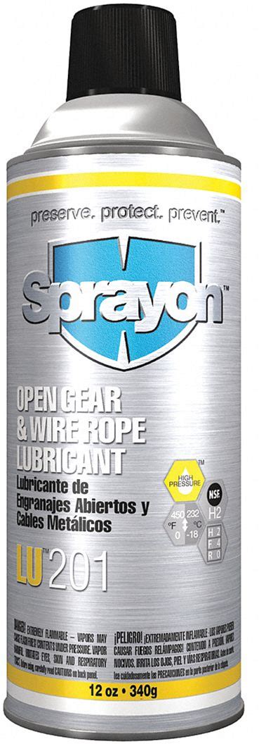 Sprayon Chain & Wire Rope Lubricant: NSF H2, 16 Oz, Aerosol Can, Wide Spray, Mineral Oil Base, Black Model: SC0201000
