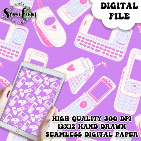 Flip Phone Seamless Pattern Design / Bold Retro 2000S Pattern For Fabric Or Scrapbooking Paper / Fun Pink Cellphone Design Repeating, Y2k