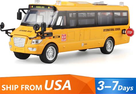 Alloy Die-Cast Yellow School Bus Model - With Simulated Sound - Lights And Open Doors For Toddlers -