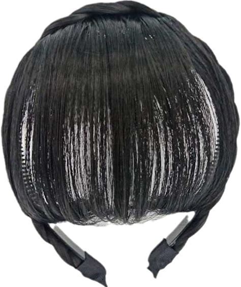 Jowxsx 100% Black Human Hair Extensions Medium Black Clip On Fringe Bangs With Nice Net Natural Flat Neat Bangs With Temples For Women One Piece