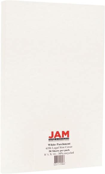 JAM Paper Legal Card Stock, White Parchment, Legal (8.5" X 14"), 65 Lb, Pack Of 50