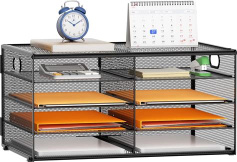 Marbrasse 6 Tier Paper Organizer Letter Tray - Mesh Desk File Organizer With Handle, Paper Sorter Organizer For Letter/A4 Office File Folder Holder -