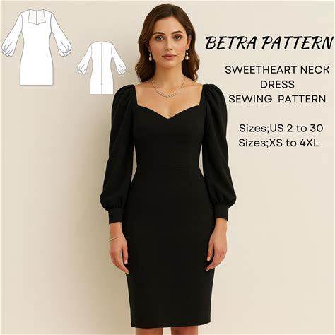 Noelle Puff-Sleeved Sweetheart Neckline Dress PDF Sewing Pattern - US Sizes Xs-3Xl - PDF Instant Download With Instructions & Video Tutorial