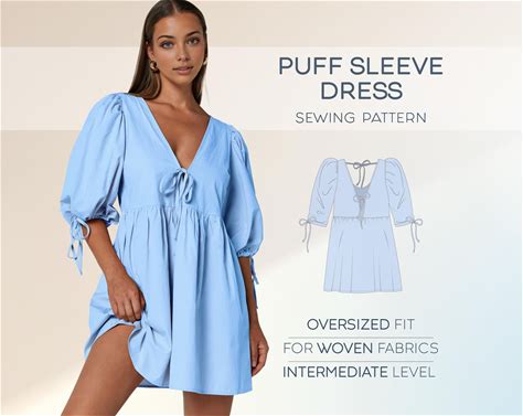 Dress Sewing Pattern, Puff Sleeve Dress Pattern, Loose Dress Pattern, Simple Dress Easy Pattern, Plus Size Sewing Patterns