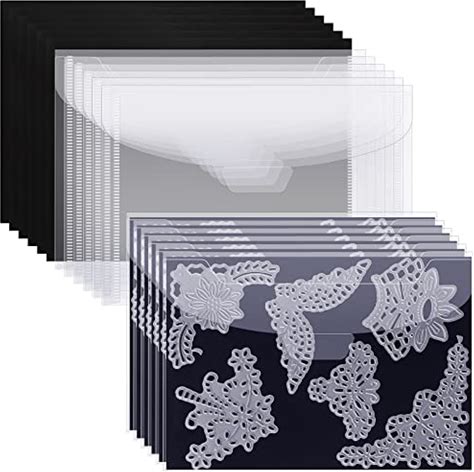 12 Pcs Stamp And Die Storage Bag With 12 Pieces Rubber Magnetic Sheets Clear Resealable Plastic Seal Bags Storage Pocket Large Stencil Envelope Case