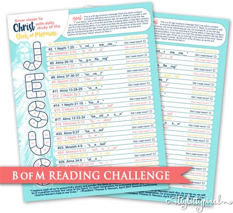Book Of Mormon Scripture Reading Challenge- LDS Chart Primary Digital PRINTABLE 2020 Activity Young Women Men FHE Youth Jesus Christ Study