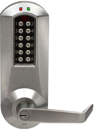 Kaba Simplex E5010XSWL626 Eplex Exit Trim Electronic Pushbutton Lock With Winston Lever And Kaba Cylinder Satin Chrome Finish
