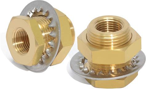 Boeray 2Pcs Brass Bulkhead Fittings 3/8" NPT Female To 3/8" NPT Female Thread Bulkhead Straight Connector Brass Coupling 1.3" Length Outer Diameter 1"