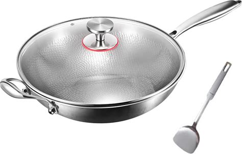 Skillet Titanium Hammered Pan Pro With Lid Spatula, Durable Scratch Resistant Nutri Pan, Multifunctional Frying Pans For Cooking Non Stick, Even Heating,13.4"(11.8")