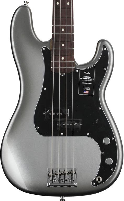Fender American Professional II Precision Bass - Mercury With Rosewood Fingerboard Guitar 4-String Electric Bass With Alder Body, Maple Neck,