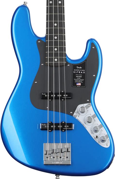 Fender American Ultra II Jazz Bass - Noble Blue, Ebony Fingerboard Guitar 4-String Electric Bass With Alder Body, Maple Neck, Ebony Fingerboard, 2